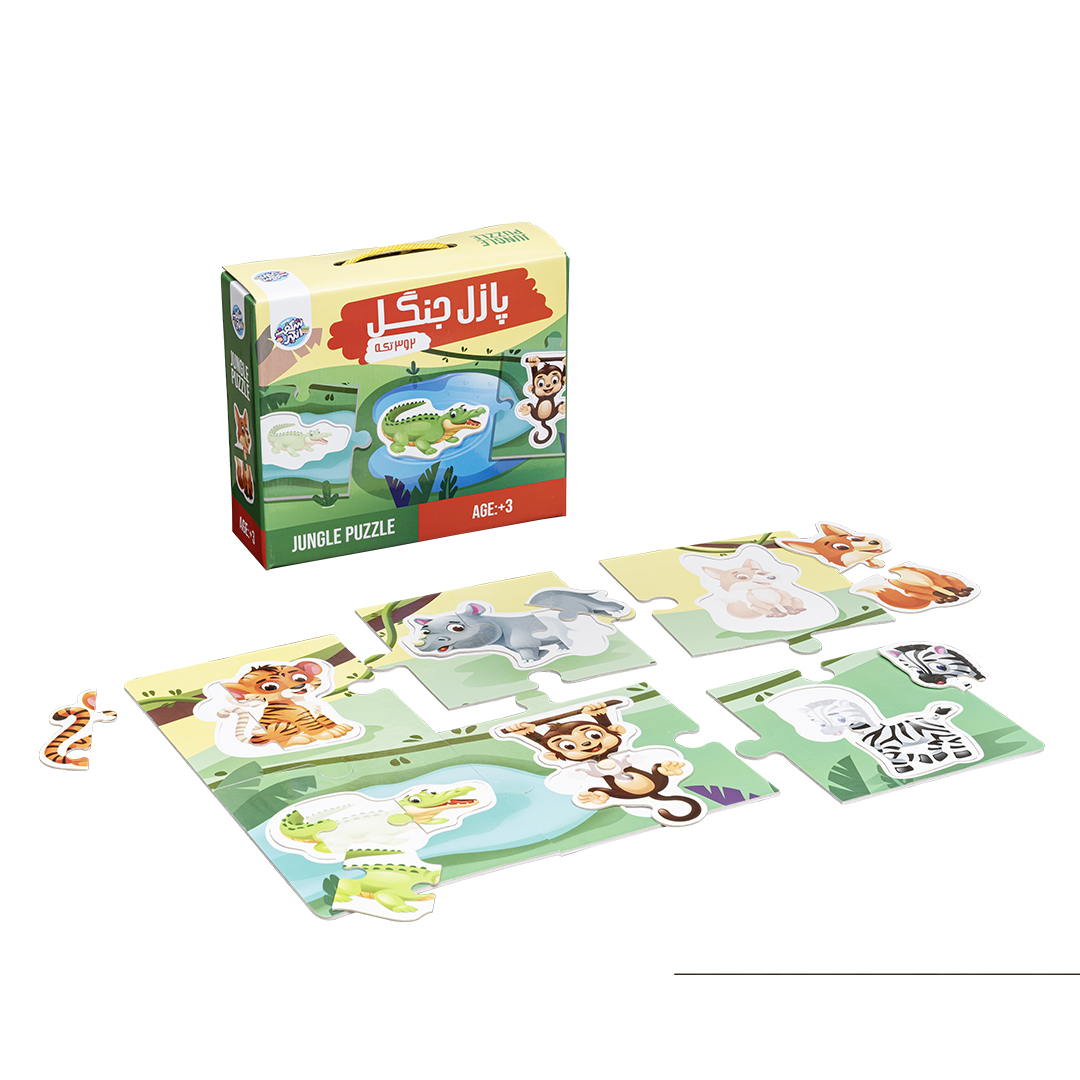پازل جنگل شامل ۶ تکه پازل از حیوانات مزرعه است که کودک با قرار دادن تکه های هر حیوان درجای خودش به تفاوت حیوانات با یکدیگر پی خواهد برد. از موارد مورد توجه در این پازل دو و سه تکه ای بودن هر حیوان میباشد. که کودک میبایستی هرتکه را در جای خودش قرار داده و تکه متناظر را بیابد.